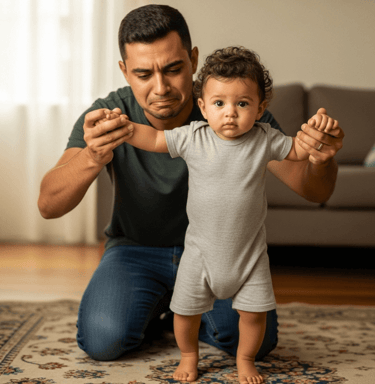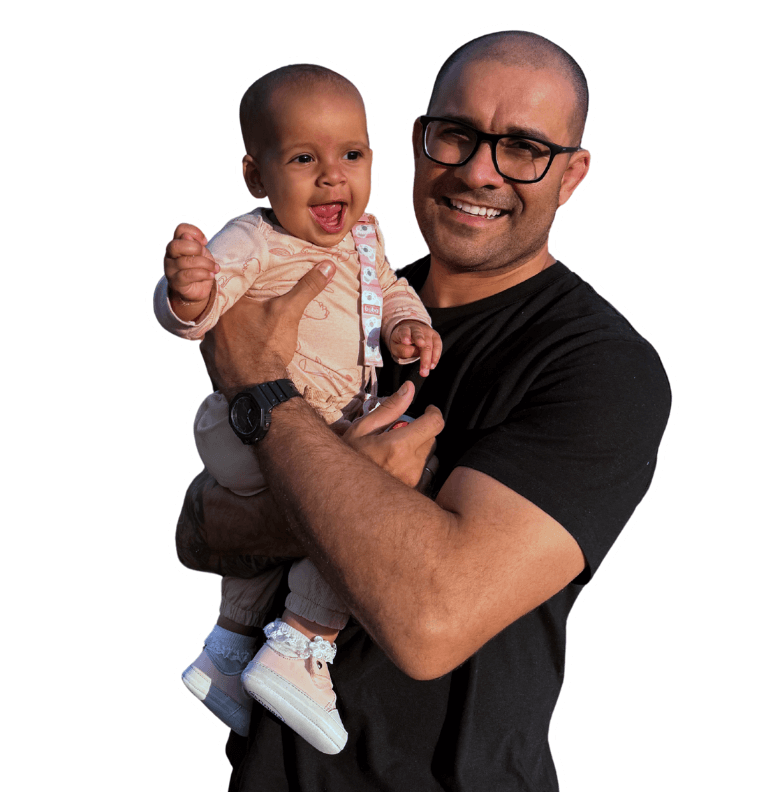 Como especialista em treinamento desportivo, pai de uma menina linda, que sempre foi preocupado em estimular, estudou o que é importante para o desenvolvimento de bebês e aplicou na sua filha e por consequência disso, a bebê começou a andar aos 10 meses.